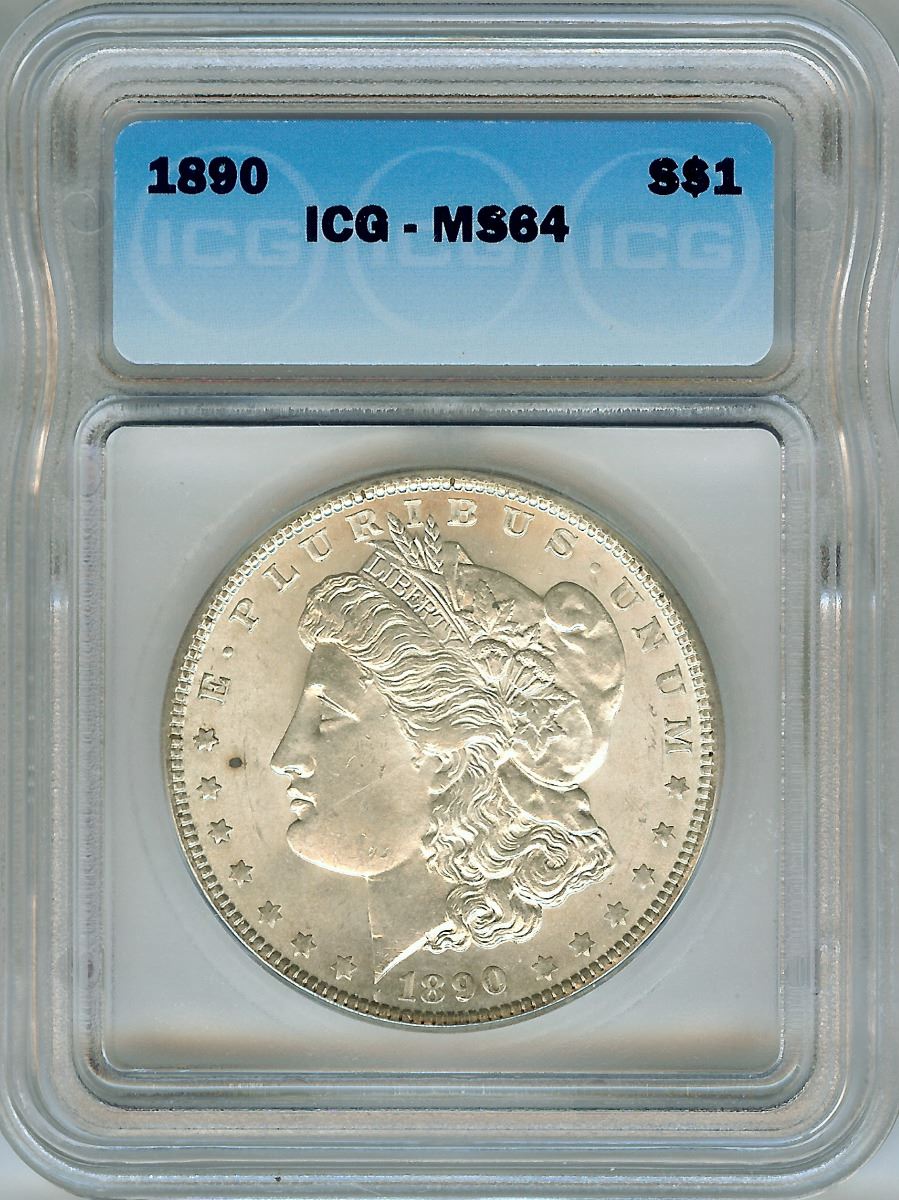 1890 MORGAN SILVER DOLLAR ICG MS64