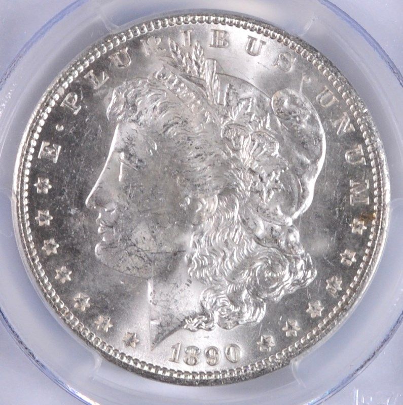 1890 MORGAN SILVER DOLLAR, PCGS MS-63+ WHITE