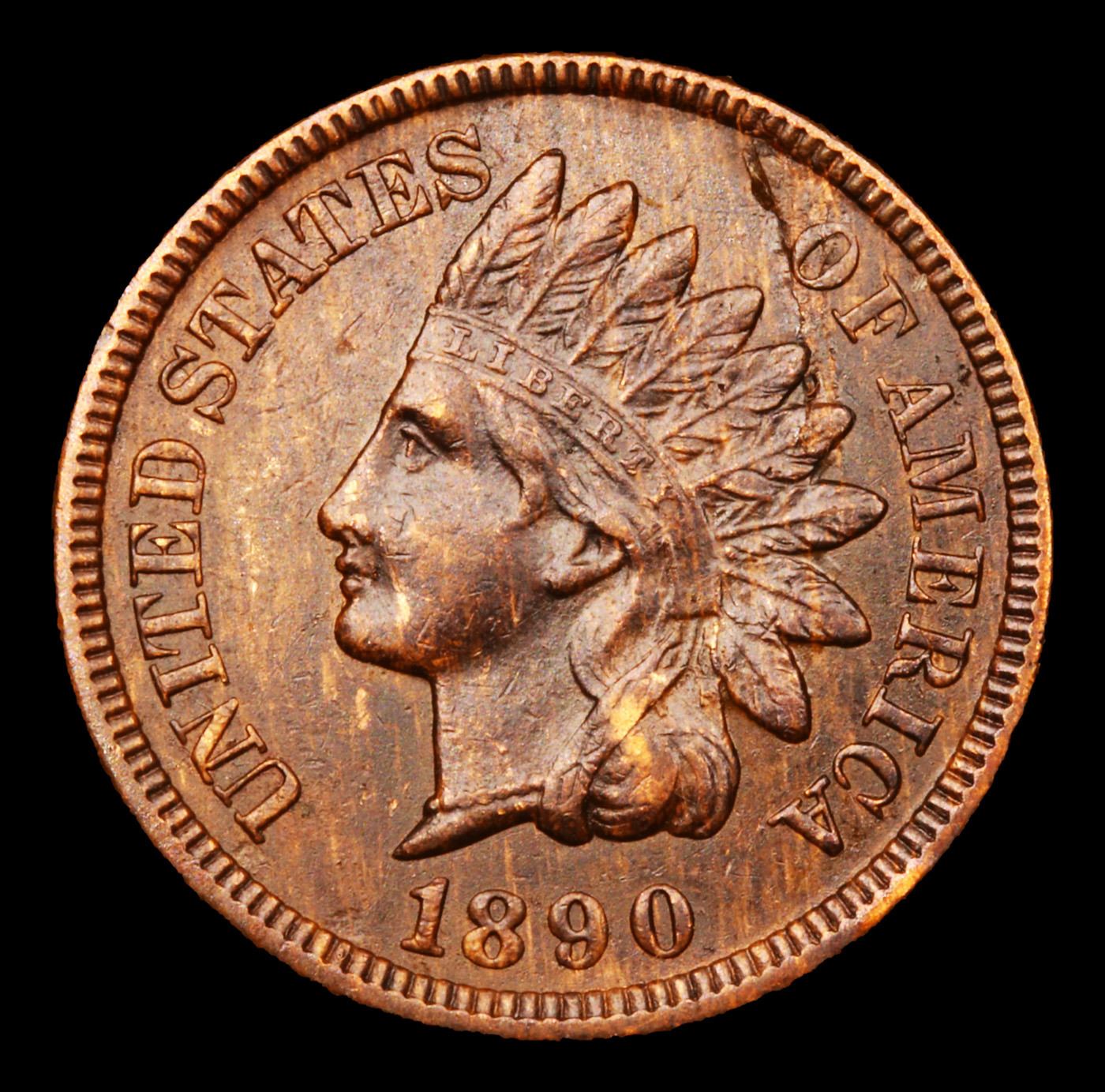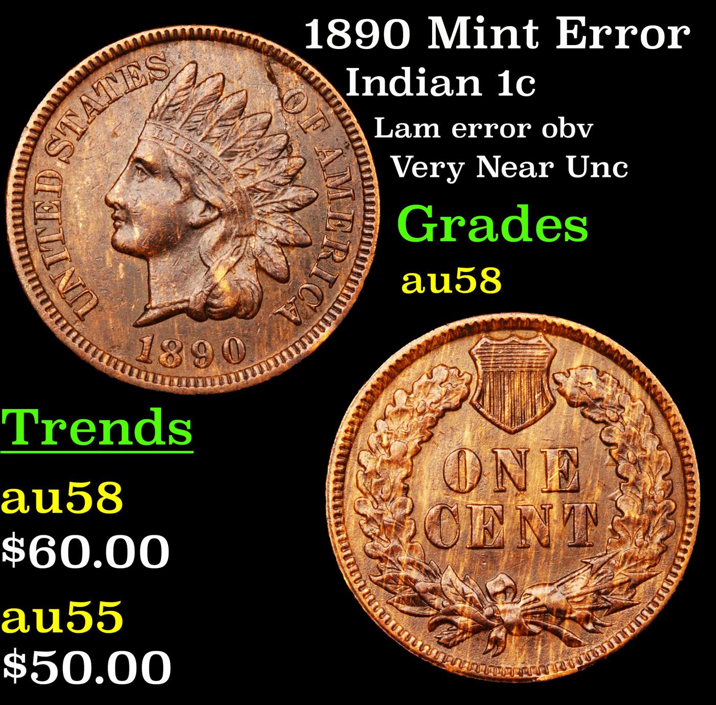 1890 Mint Error Indian Cent 1c Grades Choice AU/BU Slider.