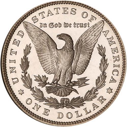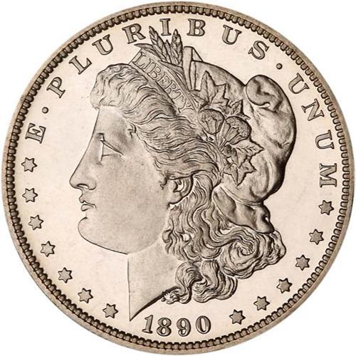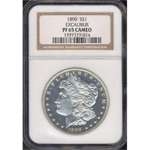 <b>1890 Morgan Dollar. NGC graded PF65 CAM Ex Excalibur Collection.</b> The surfaces range from silvery to hard white frost, with the fields deeply, brilliantly mirrored. There is no toning. A lustrous and nicely struck Cameo Gem. And speaking of "struck", this piece shows great detail with systematic exactness throughout, there is no need to worry about the central part of the hair and eagle where a somewhat rounded impression is sometimes left after the dies retract. This coin is decidedly bold in the centers. Only 590 Proofs were minted in 1890.