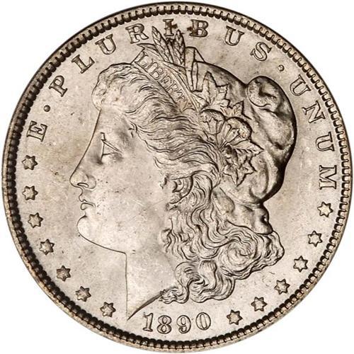 <b>1890 Morgan Dollar. PCGS graded MS65.</b> This is a blemish-free case in point of the 1890 Morgan dollar in MS65: sleek white in color, with mint bloom that captures the full effect of the careful preservation since it was made. Only a few light bagmarks in the fields. Not to go overboard, there is a wealth of detail seen throughout this well struck specimen <b>(PCGS # 7196)</b>