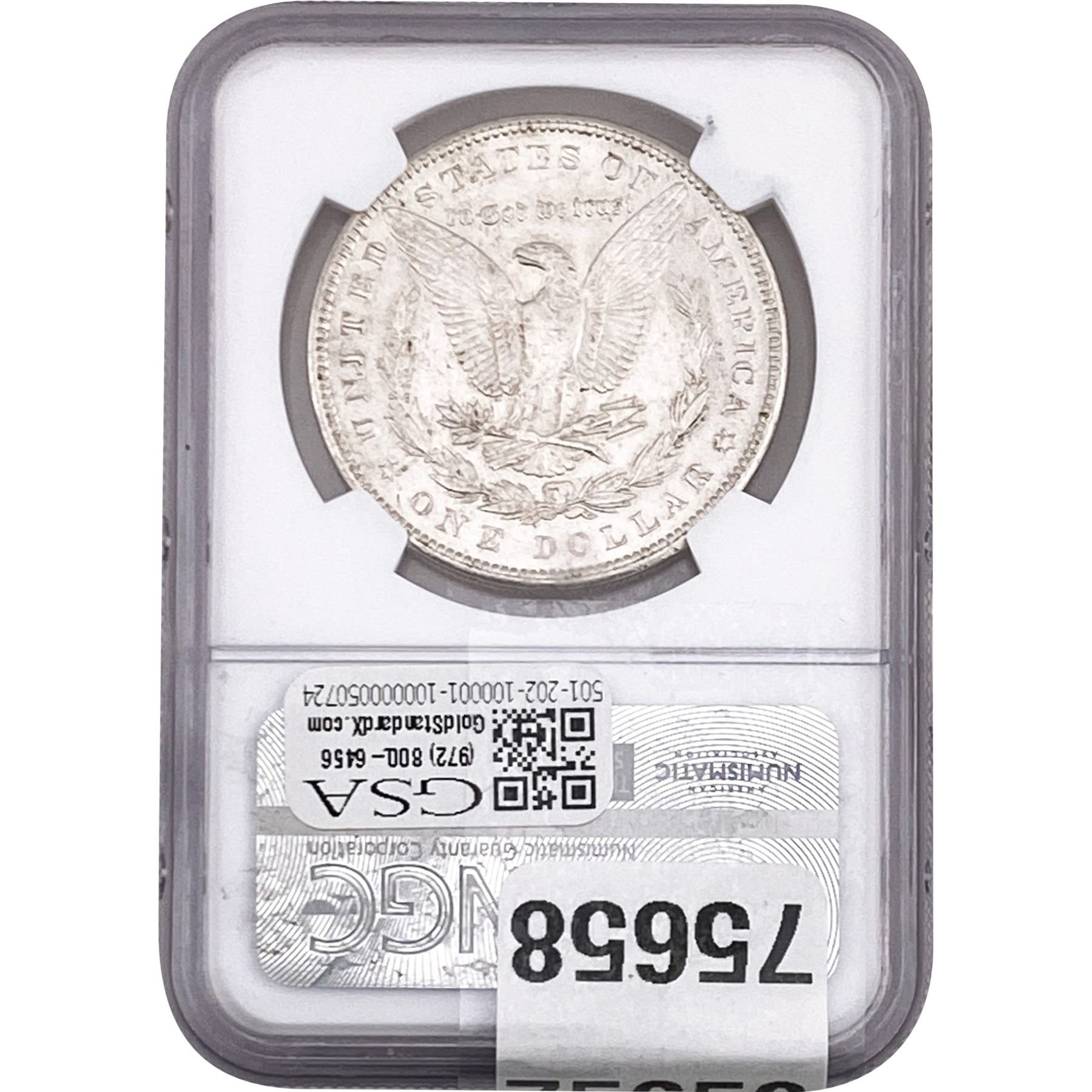 e. Coins sold referencing a third-party grading service are sold “AS IS” without any express or implied warranty, except for a guarantee by GSA that they are genuine. Removal or alteration of the holder, voids all of Bidder’s claims concerning that Product. Certain warranties may be available from the grading services and Bidders are referred to them for further details: Numismatic Guaranty Corporation (NGC), PO Box 4776, Sarasota, FL 34230, www.ngccoin.com/services/writtenguarantee.asp; Professional Coin Grading Services (PCGS), PO Box 9458, Newport Beach, CA 92658, www.pcgs.com/guarantee.html; ANACS, 6555 S. Kenton St., Ste. 303, Englewood, CO 80111; and Independent Coin Grading Co. (ICG), 7901 East Bellview, Ave., Suite 50, Englewood, CO 80111.