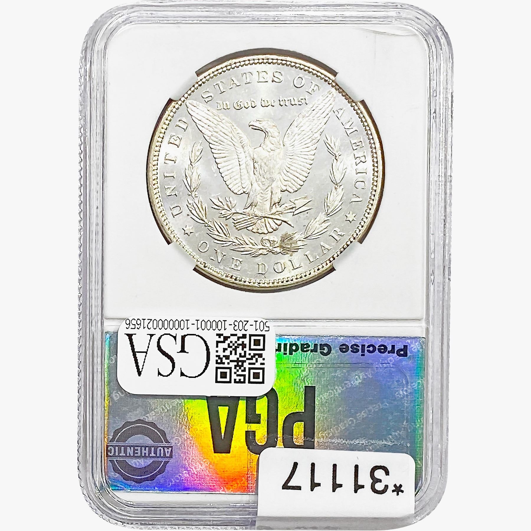 COINS AND CURRENCY LISTED IN GSA’S CATALOG AS GRADED AND ENCAPSULATED BY PCGS, NGC, ANACS, ICG, PCGS CURRENCY, PMG, PCGS BANKNOTE GRADING, CMC OR ANY OTHER THIRD-PARTY GRADING SERVICE ARE LIKEWISE SOLD “AS-IS” EXCEPT AS EXPRESSLY SET FORTH HEREIN. ALL THIRD-PARTY GRADING SERVICE GUARANTEES, INCLUDING AUTHENTICITY, ARE THE SOLE RESPONSIBILITY OF THE THIRD-PARTY GRADING SERVICE AND NOT WARRANTIES OR GUARANTEES OF GSA. BIDDERS SHOULD CONTACT THESE THIRD-PARTY GRADING SERVICES DIRECTLY WITH RESPECT TO ANY CLAIMS OR QUESTIONS THEY MAY HAVE CONCERNING THEIR GUARANTEES AND WARRANTIES. BIDDERS ACKNOWLEDGE AND AGREE THAT AUCTIONEER IS NOT BOUND BY OR LIABLE FOR ANY OPINION OR CERTIFICATION BY ANY THIRD-PARTY GRADING SERVICE. REMOVAL OF A PRODUCT FROM ITS PROTECTIVE CASING OR HOLDER OR ALTERATION OF ANY COIN HOLDER WAIVES ALL RIGHTS CONCERNING THE PRODUCT CONTAINED THEREIN.