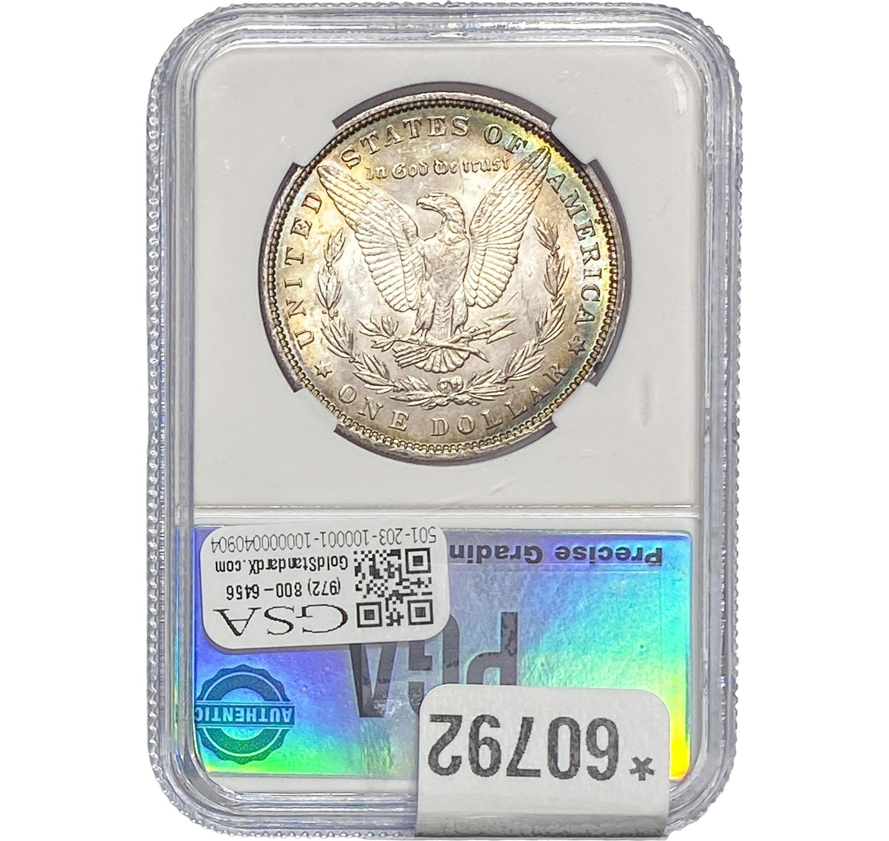 COINS AND CURRENCY LISTED IN GSA’S CATALOG AS GRADED AND ENCAPSULATED BY PCGS, NGC, ANACS, ICG, PCGS CURRENCY, PMG, PCGS BANKNOTE GRADING, CMC OR ANY OTHER THIRD-PARTY GRADING SERVICE ARE LIKEWISE SOLD “AS-IS” EXCEPT AS EXPRESSLY SET FORTH HEREIN. ALL THIRD-PARTY GRADING SERVICE GUARANTEES, INCLUDING AUTHENTICITY, ARE THE SOLE RESPONSIBILITY OF THE THIRD-PARTY GRADING SERVICE AND NOT WARRANTIES OR GUARANTEES OF GSA. BIDDERS SHOULD CONTACT THESE THIRD-PARTY GRADING SERVICES DIRECTLY WITH RESPECT TO ANY CLAIMS OR QUESTIONS THEY MAY HAVE CONCERNING THEIR GUARANTEES AND WARRANTIES. BIDDERS ACKNOWLEDGE AND AGREE THAT AUCTIONEER IS NOT BOUND BY OR LIABLE FOR ANY OPINION OR CERTIFICATION BY ANY THIRD-PARTY GRADING SERVICE. REMOVAL OF A PRODUCT FROM ITS PROTECTIVE CASING OR HOLDER OR ALTERATION OF ANY COIN HOLDER WAIVES ALL RIGHTS CONCERNING THE PRODUCT CONTAINED THEREIN.