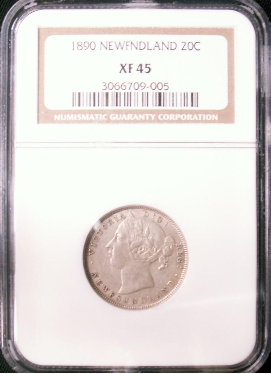 1890 Nfld 20¢ NGC XF45. Greyish tint and remaining lustre