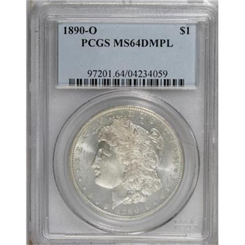 <B>1890-O $1 MS64 Deep Mirror Prooflike PCGS.</B></I> A delightful Choice piece, this O-mint dollar displays wonderful reflectivity and minimal patina. The well struck, lightly frosted devices supply a modicum of contrast. PCGS has graded just 17 finer Deep Mirror Prooflike pieces (9/07).<BR><BR><b>Shipping:</b> Coins & Currency (<a target="_blank" href="http://www.heritageauctions.com/common/shipping.php">view shipping information</a>)