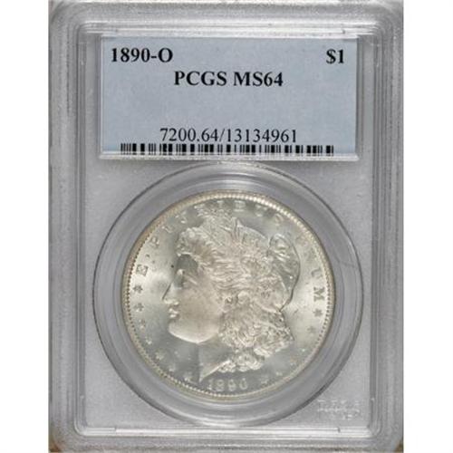 <B>1890-O $1 MS64 PCGS.</B></I> PCGS Population (2454/358). NGC Census: (2093/148). Mintage: 10,701,000. Numismedia Wsl. Price for NGC/PCGS coin in MS64: $280. (#7200)<BR><BR><b>Shipping:</b> Coins & Currency (<a target="_blank" href="http://www.heritageauctions.com/common/shipping.php">view shipping information</a>)