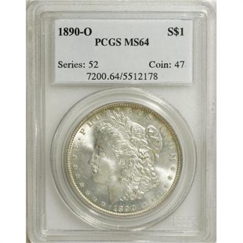 <B>1890-O $1 MS64 PCGS.</B></I> PCGS Population (2454/358). NGC Census: (2087/148). Mintage: 10,701,000. Numismedia Wsl. Price for NGC/PCGS coin in MS64: $280. (#7200)<BR><BR><b>Shipping:</b> Coins & Currency (<a target="_blank" href="http://www.heritageauctions.com/common/shipping.php">view shipping information</a>)