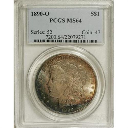 <B>1890-O $1 MS64 PCGS.</B></I> PCGS Population (2454/358). NGC Census: (2093/148). Mintage: 10,701,000. Numismedia Wsl. Price for NGC/PCGS coin in MS64: $280. (#7200)<BR><BR><b>Shipping:</b> Coins & Currency (<a target="_blank" href="http://www.heritageauctions.com/common/shipping.php">view shipping information</a>)