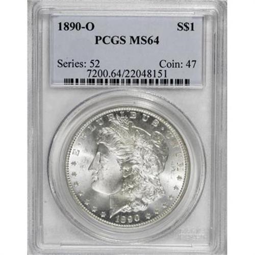 <B>1890-O $1 MS64 PCGS.</B></I> PCGS Population (2553/397). NGC Census: (2116/151). Mintage: 10,701,000. Numismedia Wsl. Price for NGC/PCGS coin in MS64: $280. (#7200)<BR><BR><B>Coin Engraver:</B> George T. Morgan<BR><BR><b>Shipping:</b> Coins & Currency (<a target="_blank" href="http://www.heritageauctions.com/common/shipping.php">view shipping information</a>)