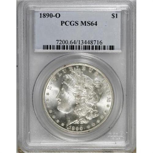 <B>1890-O $1 MS64 PCGS.</B></I> . PCGS Population (2753/420). NGC Census: (2144/148). Mintage: 10,701,000. Numismedia Wsl. Price for NGC/PCGS coin in MS64: $270. (#7200)<BR><BR><B>Coin Engraver:</B> George T. Morgan<BR><BR><b>Shipping:</b> Coins & Currency (<a target="_blank" href="http://www.heritageauctions.com/common/shipping.php">view shipping information</a>)