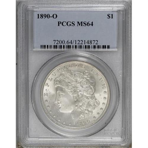 <B>1890-O $1 MS64 PCGS.</B></I> . PCGS Population (2770/427). NGC Census: (2149/148). Mintage: 10,701,000. Numismedia Wsl. Price for NGC/PCGS coin in MS64: $270. (#7200)<BR><BR><B>Coin Engraver:</B> George T. Morgan<BR><BR><b>Shipping:</b> Coins & Currency (<a target="_blank" href="http://www.heritageauctions.com/common/shipping.php">view shipping information</a>)