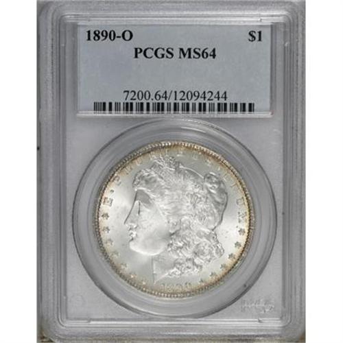 <B>1890-O $1 MS64 PCGS.</B></I> . PCGS Population (2770/427). NGC Census: (2149/148). Mintage: 10,701,000. Numismedia Wsl. Price for NGC/PCGS coin in MS64: $270. (#7200)<BR><BR><B>Coin Engraver:</B> George T. Morgan<BR><BR><b>Shipping:</b> Coins & Currency (<a target="_blank" href="http://www.heritageauctions.com/common/shipping.php">view shipping information</a>)