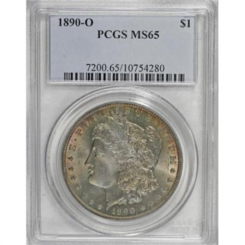 <B>1890-O $1 MS65 PCGS.</B></I> Mauve and golden-orange patina covers both sides of this highly lustrous Gem. While not fully struck, the centers are certainly better detailed than the usually seen 1890-O dollar. Smooth and satiny, the rich toning cannot subdue the underlying luster.<BR><BR><B>Coin Engraver:</B> George T. Morgan<BR><BR><b>Shipping:</b> Coins & Currency (<a target="_blank" href="http://www.heritageauctions.com/common/shipping.php">view shipping information</a>)