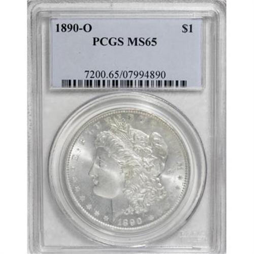 <B>1890-O $1 MS65 PCGS.</B></I> A few wisps of light tan color show up under magnification on the lustrous surfaces of this New Orleans Gem. Well preserved, with the usual softness in the centers.<BR><BR><B>Coin Engraver:</B> George T. Morgan<BR><BR><b>Shipping:</b> Coins & Currency (<a target="_blank" href="http://www.heritageauctions.com/common/shipping.php">view shipping information</a>)