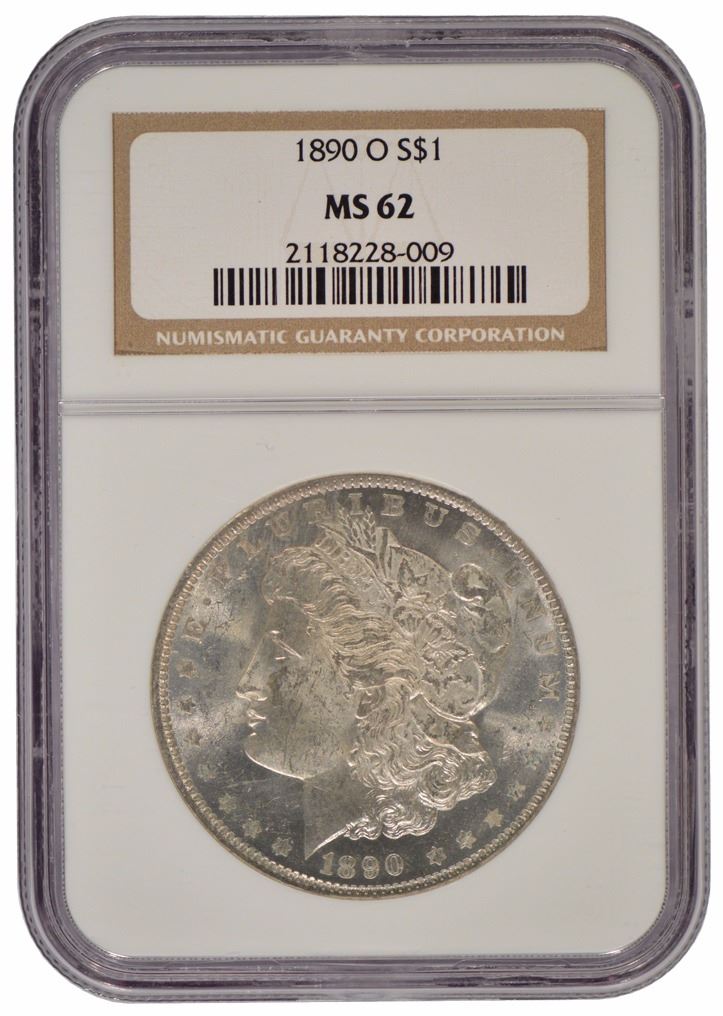 One 1890-O $1 Morgan Silver Dollar Coin NGC MS62.