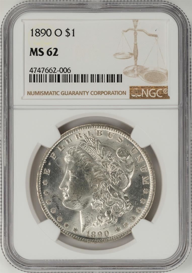 One 1890-O $1 Morgan Silver Dollar Coin NGC MS62. NGC Certified.