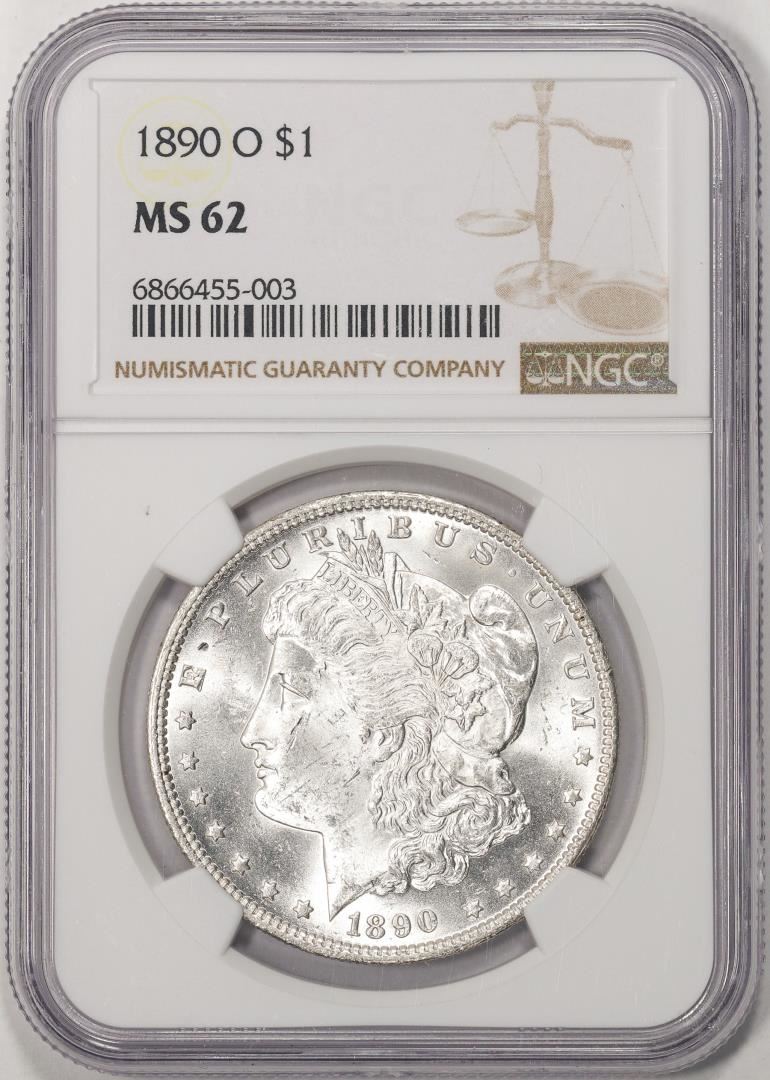 One 1890-O $1 Morgan Silver Dollar Coin NGC MS62. NGC Certified.