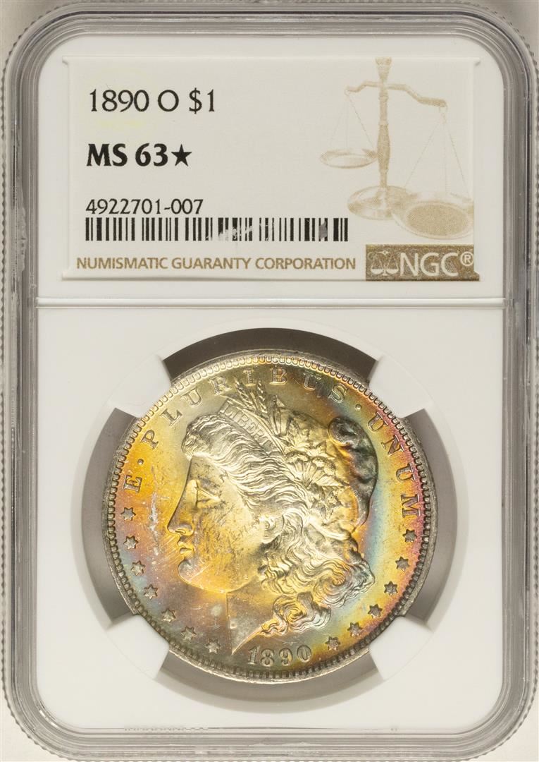 One 1890-O $1 Morgan Silver Dollar Coin NGC MS63 STAR Amazing Rainbow Toning. NGC Certified.