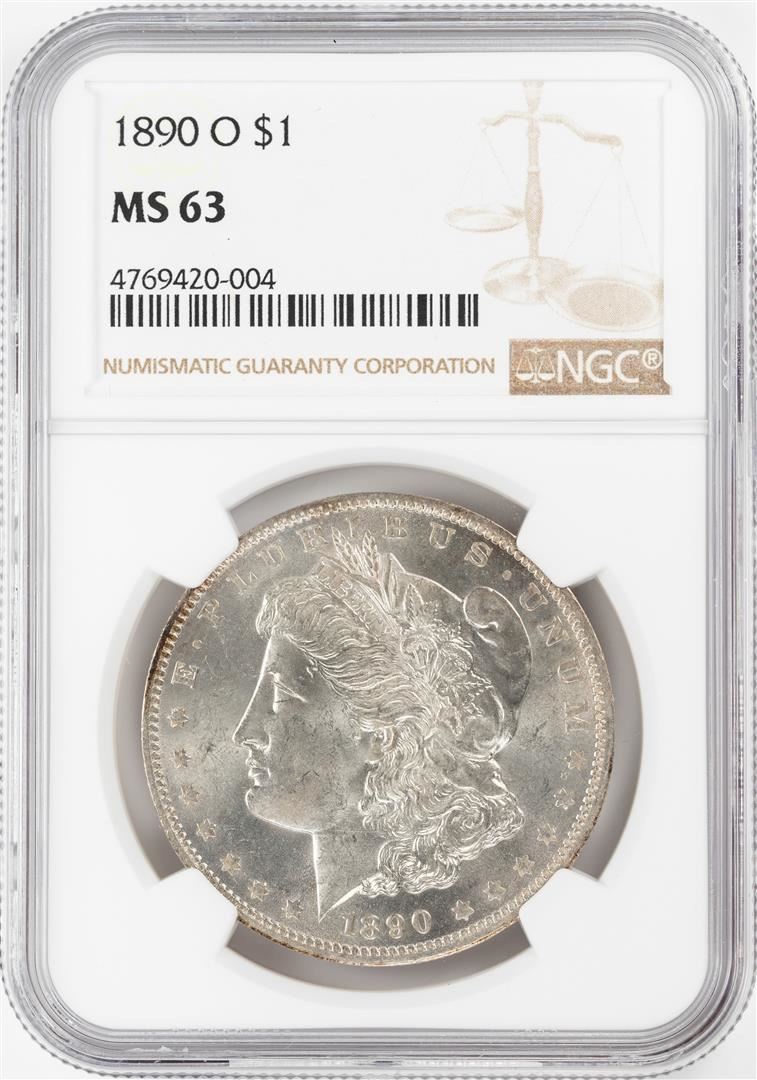 One 1890-O $1 Morgan Silver Dollar Coin NGC MS63. NGC Certified.