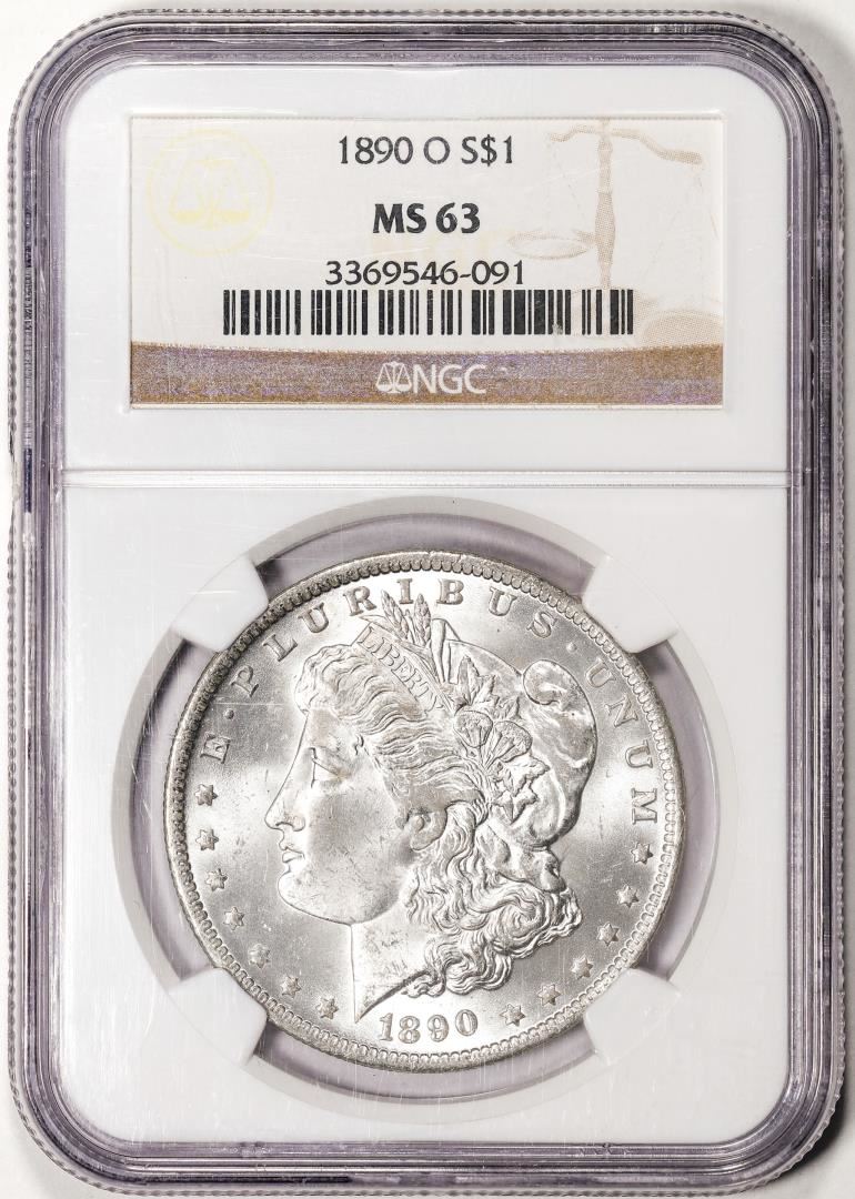 One 1890-O $1 Morgan Silver Dollar Coin NGC MS63. NGC Certified.