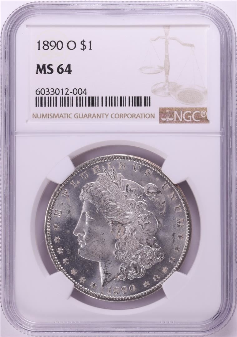 One 1890-O $1 Morgan Silver Dollar Coin NGC MS64. NGC Certified.