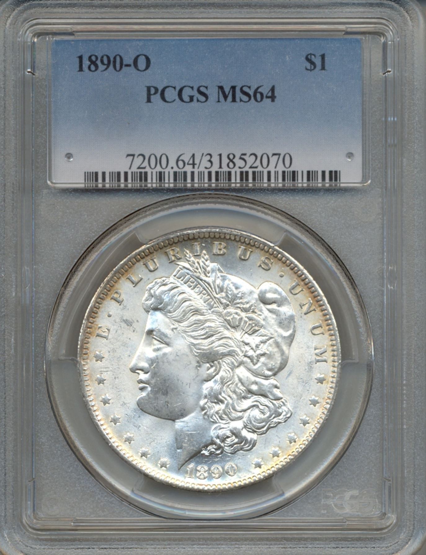 One 1890-O $1 Morgan Silver Dollar Coin PCGS MS64.