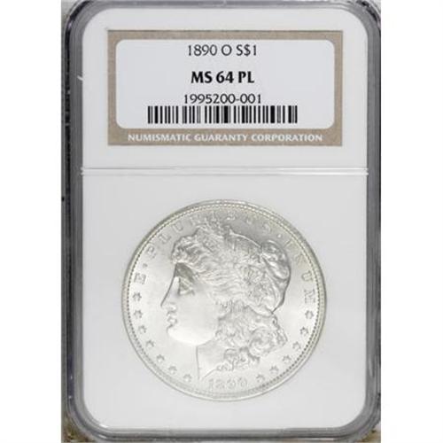 <B>1890-O $1 MS64 Prooflike NGC.</B></I> NGC Census: (96/12). PCGS Population (119/22). Numismedia Wsl. Price for NGC/PCGS coin in MS64: $276. (#7201)<BR><BR><B>Coin Engraver:</B> George T. Morgan<BR><BR><b>Shipping:</b> Coins & Currency (<a target="_blank" href="http://www.heritageauctions.com/common/shipping.php">view shipping information</a>)