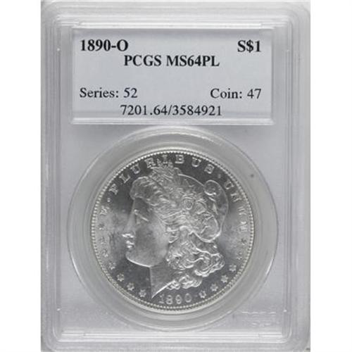 <B>1890-O $1 MS64 Prooflike PCGS.</B></I> PCGS Population (122/20). NGC Census: (96/12). Numismedia Wsl. Price for NGC/PCGS coin in MS64: $276. (#7201)<BR><I>From The Diamond Head Registry Set of Prooflike Dollars.</B></I><BR><BR><B>Coin Engraver:</B> George T. Morgan<BR><BR><b>Shipping:</b> Coins & Currency (<a target="_blank" href="http://www.heritageauctions.com/common/shipping.php">view shipping information</a>\)