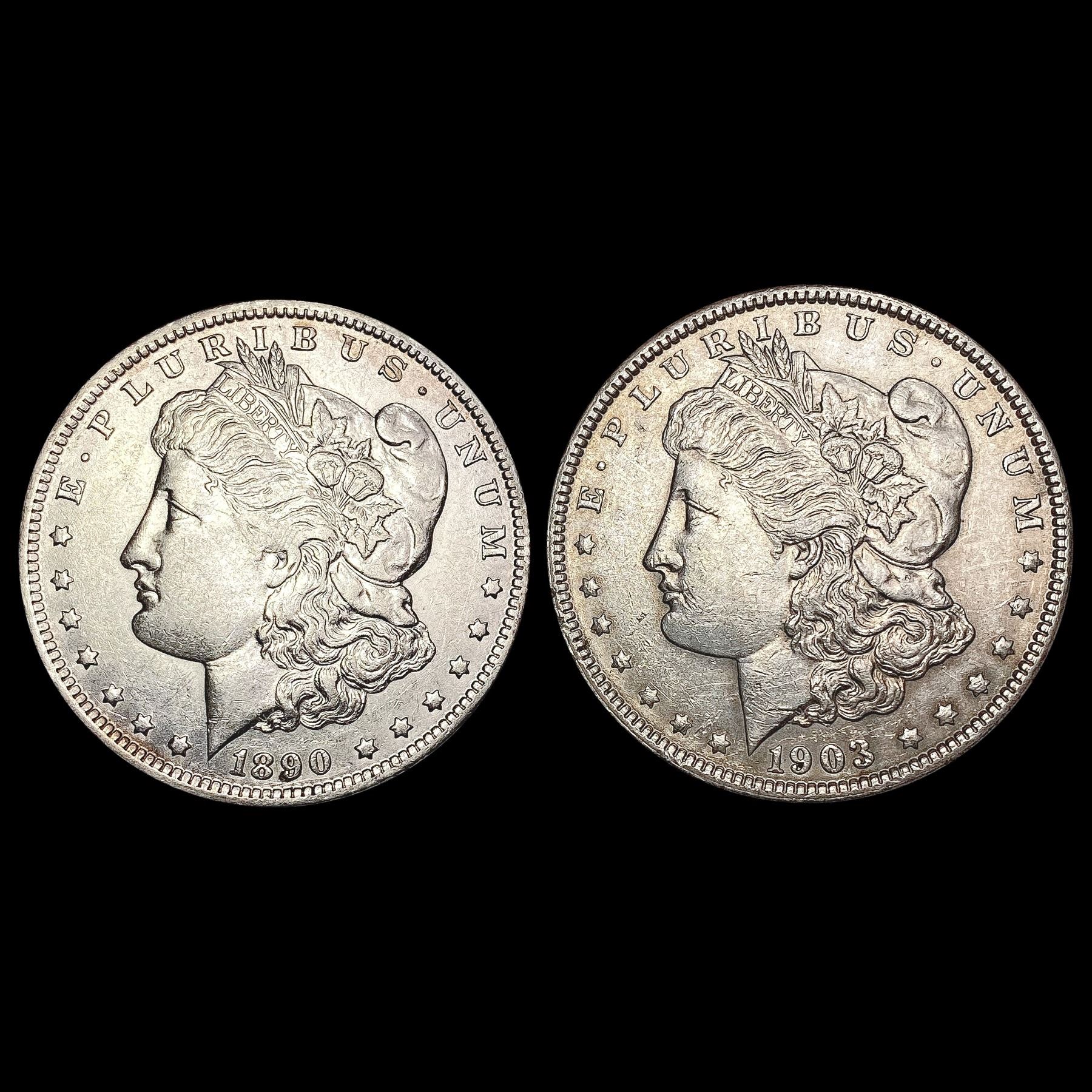 1890- O & 1903 [2] Morgan Silver Dollar CHOICE AU