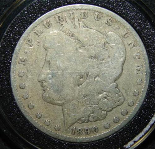 1890-O U.S. MORGAN SILVER DOLLAR. Coin is in circular case.