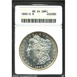 1890-O S$1 MS64 Deep Mirror Prooflike ANACS. The borders have lovely peach patina. The deeply mirrored fields also have flashy cartwheel luster. Well struck and attractive. Important notice: We expect to be auctioning lots at the rate of 200-250 per hour. Sometimes eBay Premier live bid software cannot keep up with that pace, so we strongly recommend that you place a realistic proxy bid now as insurance to avoid disappointment. Also please note that all Heritage/CAA lots purchased through eBay Premier carry a 20% Buyer's Premium. Please make sure you read the Terms and Conditions.