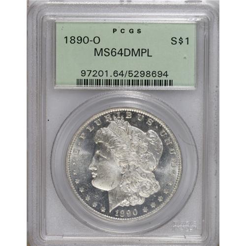 <B>1890-O S$1 MS64 Deep Mirror Prooflike PCGS.</B></I> Each side of this near-Gem exhibits considerable reflectivity and contrast. Solidly struck overall with areas of milky and tobacco-brown patina to the right of Liberty's head.<BR><BR><b>Shipping:</b> Coins & Currency (<a target="_blank" href="http://www.heritageauctions.com/common/shipping.php">view shipping information</a>)