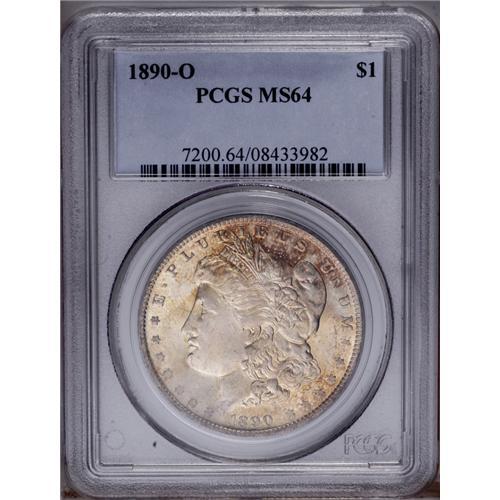 <B>1890-O<img border='0' src='http://www.heritagecoins.com/images/star.gif' width=10 height=10>$1> MS64 PCGS.</B></I> A satiny near-Gem with light champagne and pale russet toning over radiant luster. Although somewhat poorly struck as usual, this example has considerable eye appeal. <BR><BR><B>Important notice:</B> Heritage usually auctions material at the rate of 200-250 lots per hour. On some occasions eBay Live bid software or the Internet may not be able to keep up with the pace of the auction. We recommend placing a realistic absentee bid now as insurance to avoid disappointment. Occasionally the auctioneer may eliminate or reject an eBay Live bid, and the auctioneer may also reopen a lot after the close of the eBay live bidding (usually because we missed an audience bid), and may reject your bid even if it shows you as the winning bidder. By bidding via eBay Live, you agree that Heritage may award the lot to another bidder at its sole discretion under the circumstances described above or any other reasonable circumstances. Since eBay bids are not shown to us until we open the lot on the floor, we treat those bids just like floor bids. In most cases the floor responds before the eBay bid is presented to us, due to Internet lag time, so for consistency we have made it a policy that floor bids are always considered first over tie eBay live bids. Also please note that all Heritage lots purchased through eBay Live carry a 20% Buyer's Premium. Please make sure you read the Terms and Conditions before you bid. This lot is being auctioned in conjunction with a live floor auction by Heritage Galleries & Auctioneers. All final auction and invoice information will be supplied by Heritage Galleries & Auctioneers, and all other information should be considered preliminary. Lot:3553 <BR><BR><B>Winning Notification and Billing:</B> After the FINAL session in this auction is complete, Heritage will send e-mail and snail mail invoices. This process normally takes several days. All final auction and invoice information will be supplied by Heritage Galleries & Auctioneers, and all other information should be considered preliminary. <BR><BR>This auction will be conducted on a live auction floor and over the Internet through eBay Live. If you choose to place an absentee bid, please take a moment to <font color='#0000ff'><u><a href='http://pages.ebay.com/liveauctions/help/before/laabsentee.html'>learn how eBay Live absentee bidding works</a></u></font><font color='#000000'>