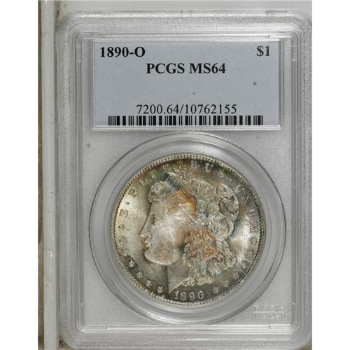 <B>1890-O S$1 MS64 PCGS.</B></I> Typically struck with above-average luster. The dove-gray patina that covers the reverse contrasts with the slate-gray, cerulean, lime, and pumpkin-orange of the obverse.<BR><BR><b>Shipping:</b> Coins & Currency (<a target="_blank" href="http://www.heritageauctions.com/common/shipping.php">view shipping information</a>)