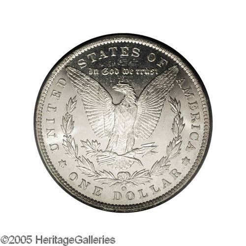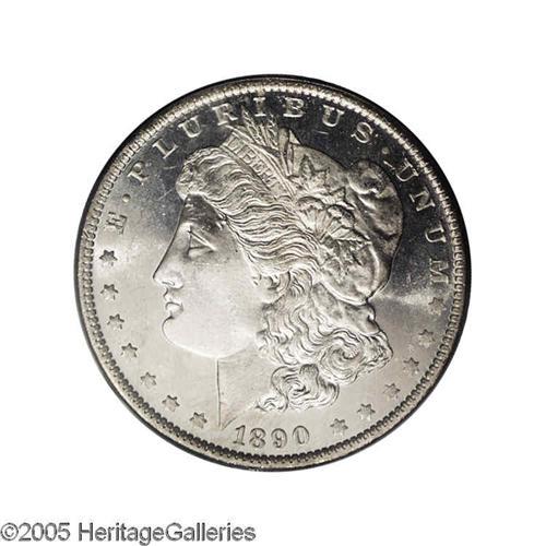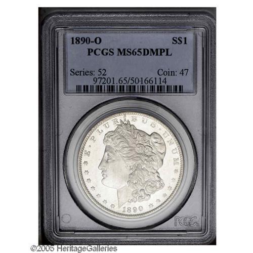 <B>1890-O<S$1> MS65 Deep Mirror Prooflike PCGS.</B></I> Essentially untoned and quite well struck for this often poorly defined (even among DMPL examples) New Orleans issue. A few shallow luster grazes on the cheek of Liberty are all that separate this nicely mirrored Gem from unparalleled condition. Population: 15 in 65, 1 finer (11/05).