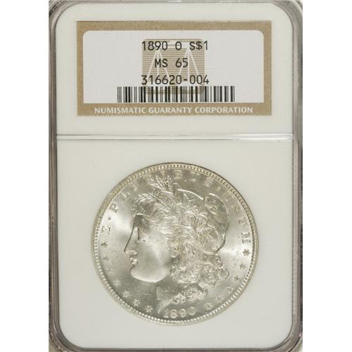 <B>1890-O S$1 MS65 NGC.</B></I> Radiantly lustrous surfaces are untoned and well preserved. The design elements are better defined than is usually seen on the issue. Common through near-Gem, but more elusive in MS65. NGC has seen a mere four pieces finer than the present coin.<BR><BR><b>Shipping:</b> Coins & Currency (<a target="_blank" href="http://www.heritageauctions.com/common/shipping.php">view shipping information</a>)