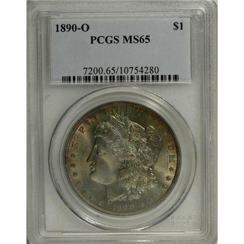 <B>1890-O S$1 MS65 PCGS.</B></I> Mauve and golden-orange patina covers both sides of this highly lustrous Gem. Solidly struck overall, though this issue's omnipresent softness is noted at the hair above the ear.<BR><BR><b>Shipping:</b> Coins & Currency (<a target="_blank" href="http://www.heritageauctions.com/common/shipping.php">view shipping information</a>)