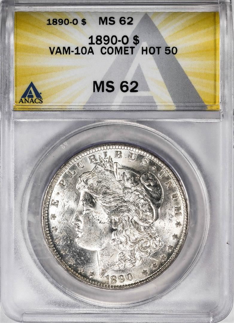 One 1890-O VAM-10A Comet Hot 50 $1 Morgan Silver Dollar Coin ANACS MS62. ANACS Certified.