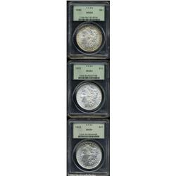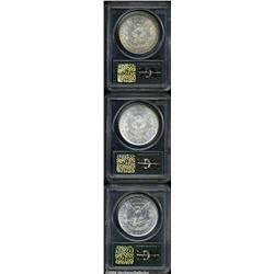 <B>1890<S$1> MS64 PCGS,</B></I> sharply struck, with a veil of gold-brown toning in the peripheries; <B>1897 MS64 PCGS,</B></I> lustrous silver-gray, with a few trivial marks; and a <B>1903 MS64 PCGS,</B></I> virtually untoned and brilliant. 3 Coins <BR><BR><B>Important notice:</B> Heritage usually auctions material at the rate of 200-250 lots per hour. On some occasions eBay Live bid software or the Internet may not be able to keep up with the pace of the auction. We recommend placing a realistic absentee bid now as insurance to avoid disappointment. Occasionally the auctioneer may eliminate or reject an eBay Live bid, and the auctioneer may also reopen a lot after the close of the eBay live bidding (usually because we missed an audience bid), and may reject your bid even if it shows you as the winning bidder. By bidding via eBay Live, you agree that Heritage may award the lot to another bidder at its sole discretion under the circumstances described above or any other reasonable circumstances. Since eBay bids are not shown to us until we open the lot on the floor, we treat those bids just like floor bids. In most cases the floor responds before the eBay bid is presented to us, due to Internet lag time, so for consistency we have made it a policy that floor bids are always considered first over tie eBay live bids. Also please note that all Heritage lots purchased through eBay Live carry a 20% Buyer's Premium. Please make sure you read the Terms and Conditions before you bid.