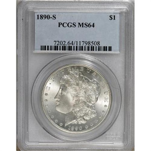 <B>1890-S $1 MS64 PCGS.</B></I> PCGS Population (2242/648). NGC Census: (1737/320). Mintage: 8,230,373. Numismedia Wsl. Price for NGC/PCGS coin in MS64: $220. (#7202)<BR><BR><B>Coin Engraver:</B> George T. Morgan<BR><BR><b>Shipping:</b> Coins & Currency (<a target="_blank" href="http://www.heritageauctions.com/common/shipping.php">view shipping information</a>\)