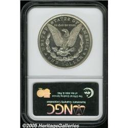 <B>1890-S<img border='0' src='http://www.heritagecoins.com/images/star.gif' width=10 height=10>$1 MS64 Prooflike NGC.</B></I> Fully struck and brilliant, the devices are not especially contrasted but the fields show confirmed reflectivity with no hint of cartwheel. A couple of milling marks keep this from the Gem category. Scarce as a prooflike. Population: 60 in 64, 11 finer (2/05).