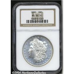 <B>1890<S$1> MS64 Prooflike NGC.</B></I> Bright, satiny fields establish a noticeable contrast with the devices. Well struck, with numerous luster grazes on Liberty's cheek and neck, and on the eagle. <BR><BR><B>Important notice:</B> Heritage usually auctions material at the rate of 200-250 lots per hour. On some occasions eBay Live bid software or the Internet may not be able to keep up with the pace of the auction. We recommend placing a realistic absentee bid now as insurance to avoid disappointment. Occasionally the auctioneer may eliminate or reject an eBay Live bid, and the auctioneer may also reopen a lot after the close of the eBay live bidding (usually because we missed an audience bid), and may reject your bid even if it shows you as the winning bidder. By bidding via eBay Live, you agree that Heritage may award the lot to another bidder at its sole discretion under the circumstances described above or any other reasonable circumstances. Since eBay bids are not shown to us until we open the lot on the floor, we treat those bids just like floor bids. In most cases the floor responds before the eBay bid is presented to us, due to Internet lag time, so for consistency we have made it a policy that floor bids are always considered first over tie eBay live bids. Also please note that all Heritage lots purchased through eBay Live carry a 20% Buyer's Premium. Please make sure you read the Terms and Conditions before you bid. </span></font></tr></table></td></tr></table>