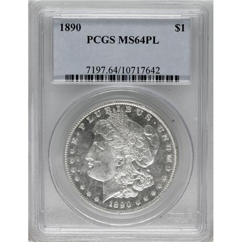 1890 S$1 MS64 Prooflike PCGS. A stone-white and flashy