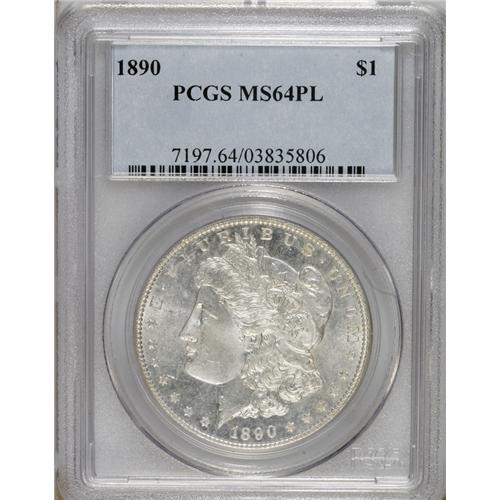 1890 S$1 MS64 Prooflike PCGS. Virtually white surfaces
