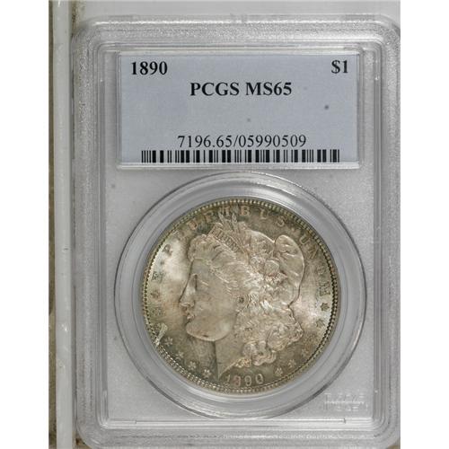 1890 S$1 MS65 PCGS. Dusky autumn-brown dominates, whil