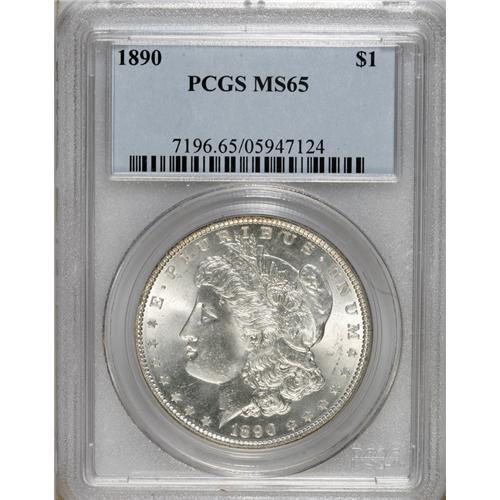 <B>1890 S$1 MS65 PCGS.</B></I> Gem examples of this issue are not often seen. Wayne Miller calls the 1890 one of the most difficult of the otherwise common date Morgans to be found at this level of preservation. This example is well struck, with crisp central details on each side. It is highly lustrous, with brilliant surfaces that reveal a dazzling cartwheel sheen. Surface marks are minimal.<BR><BR><b>Shipping:</b> Coins & Currency (<a target="_blank" href="http://www.heritageauctions.com/common/shipping.php">view shipping information</a>)