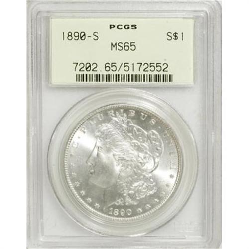 <B>1890-S $1 MS65 PCGS.</B></I> Brilliant and fully lustrous with excellent surfaces. This is a delightful dollar that will undoubtedly please the connoisseur.<BR><BR><B>Coin Engraver:</B> George T. Morgan<BR><BR><b>Shipping:</b> Coins & Currency (<a target="_blank" href="http://www.heritageauctions.com/common/shipping.php">view shipping information</a>)