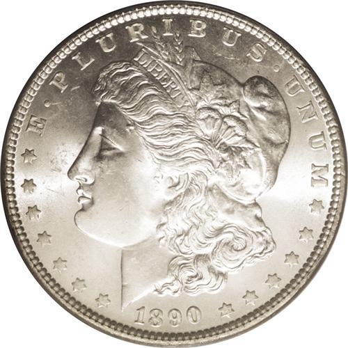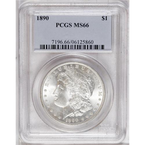 <B>1890<img border='0' src='http://www.heritagecoins.com/images/star.gif' width=10 height=10>$1> MS66 PCGS.</B></I> At the March 2006 Palm Beach Signature Sale, an 1890 Morgan dollar in MS65 was noted for its quality and as being "...tied for the finest certified by PCGS." There is another coin that now tops the <I>Population Report,</B></I> this magnificently preserved MS66, which joins three other coins certified by NGC at the peak of the combined populations (7/06). The present example has exceptional, brilliant luster and a solid strike for this issue, which typically has dull luster and some striking weakness. Though a few tiny marks appear in the fields, these have little impact on this coin's vast eye appeal. Never before has Heritage offered an 1890 dollar in MS66, and this unprecedented event may not be repeated for some time. For the sophisticated collector of this series, this is an extraordinary opportunity.