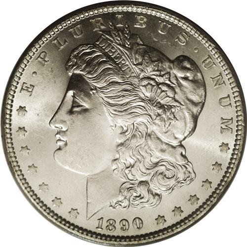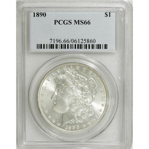 <B>1890 S$1 MS66 PCGS.</B></I> The 1890 is a common coin in lower grades. Many bags were released in the 1950s and 1960s, but high grade pieces are extremely rare. In MS66 only five pieces have been certified at PCGS and NGC, and this is the only PCGS MS66 (3/07). The present example has exceptional, brilliant luster and a solid strike for this issue, which typically has dull luster and some striking weakness. In fact, the striking definition on this piece is comparable to dollars struck 10 years earlier. The surfaces are virtually unmarked with the cheek of Liberty smooth and no noticeable marks in the fields. Boasting exceptional eye appeal and overall preservation, this piece will be of interest to the many collectors of Morgan dollars who need this issue in high grade.<BR><I>From The Jackson Hole Collection.</B></I><BR><BR><b>Shipping:</b> Coins & Currency (<a target="_blank" href="http://www.heritageauctions.com/common/shipping.php">view shipping information</a>)